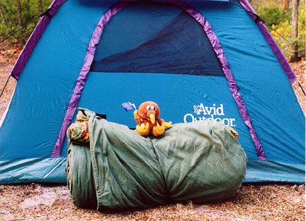 here he is camping, New Jersey style. We have Great Outdoors tents over here